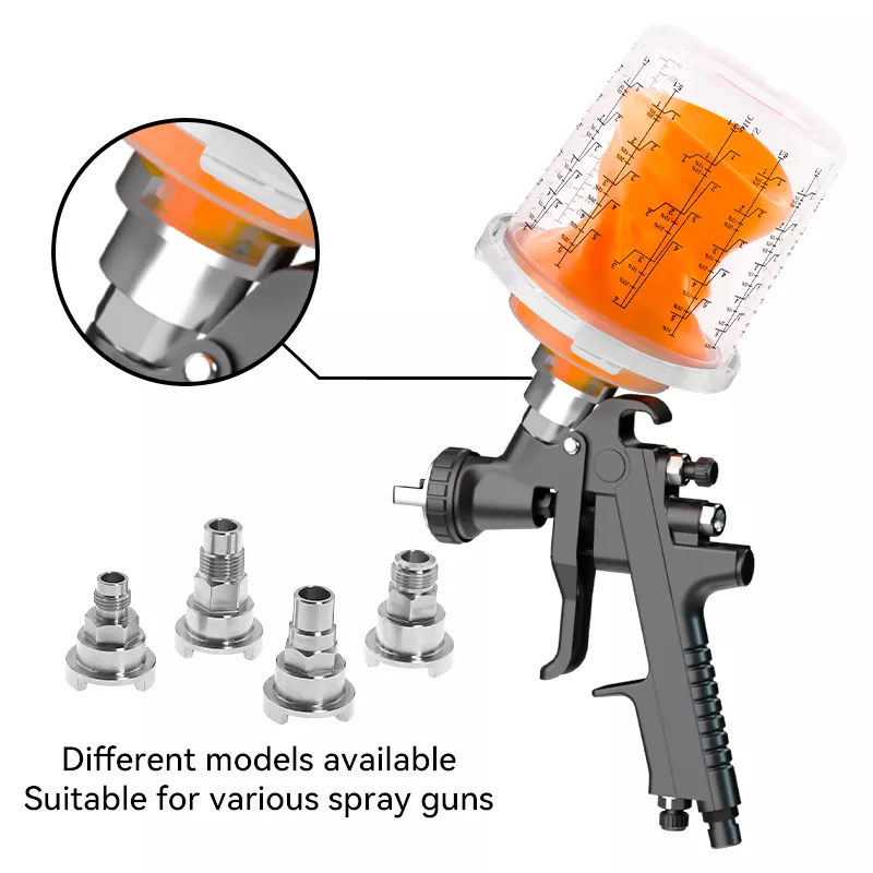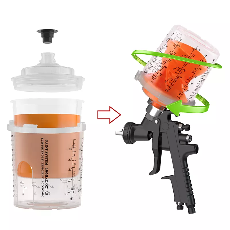 Прозрачный дизайн чашки позволяет легко наблюдать за оставшейся краской. Одноразовая аэрозольная чашка гарантирует, что распылительный пистолет может распылять 360 градусов без утечки краски, что может загрязнять поверхность деревянного зерна, вызванного капанием краски. Он подходит для распыления краски PU/NC на деревянных дверях, шкафах и мебели из твердой древесины.