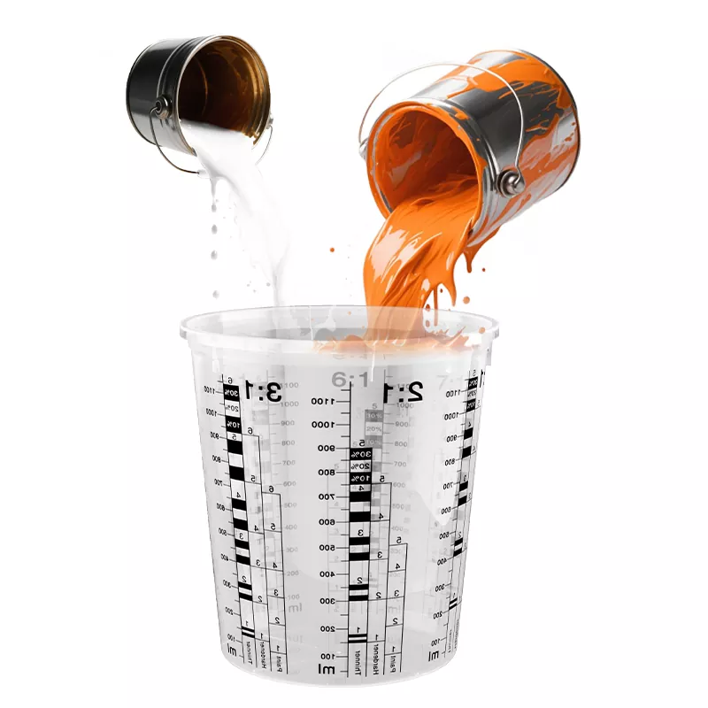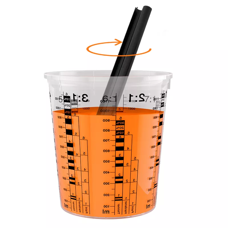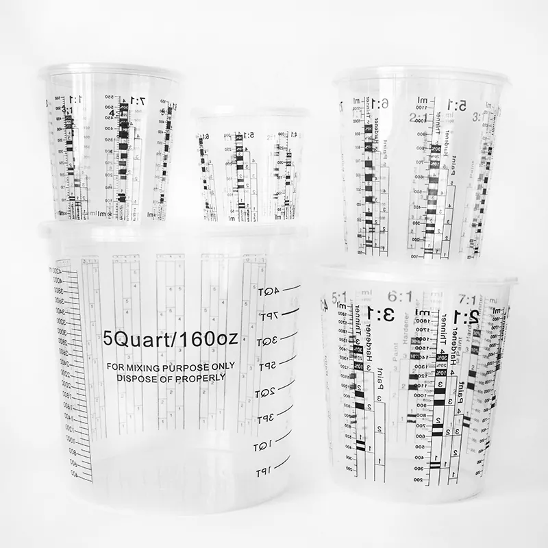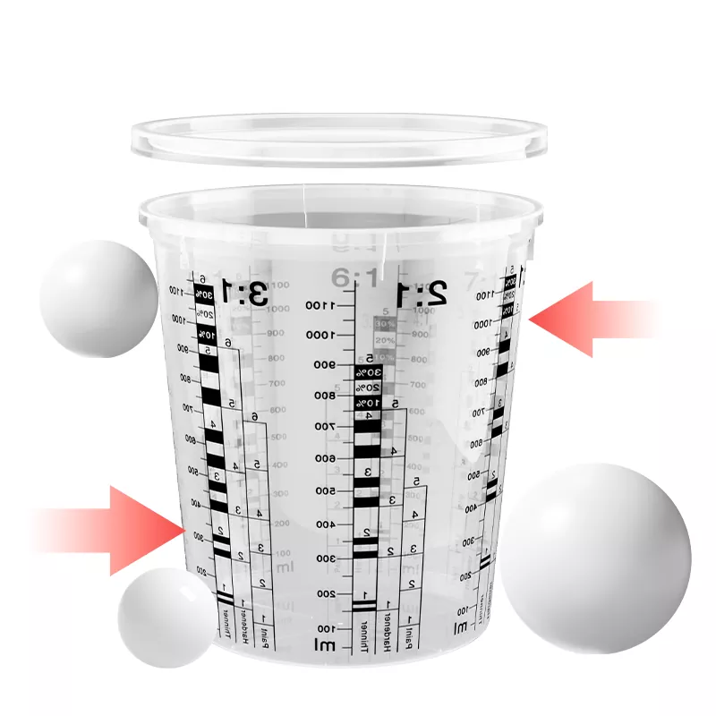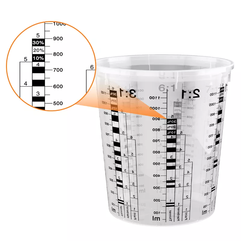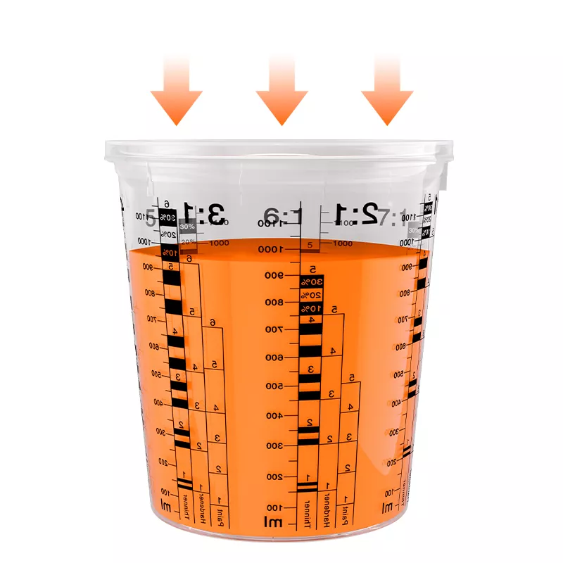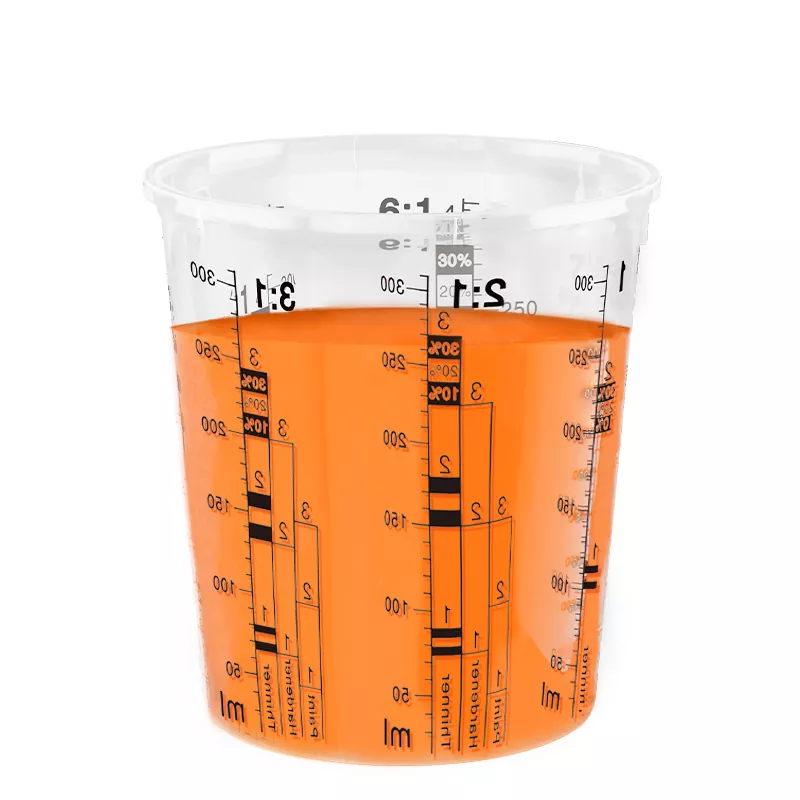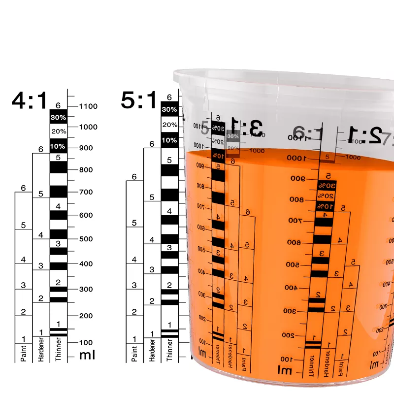 Чашка для смешивания автомобильных красок из полипропилена емкостью 385 мл с крышкой для смешивания красок и временного хранения смешанной краски. 7 различных пропорций смешивания, четко напечатанные и читаемые изнутри. Высококачественная чашка для смешивания краски с крышкой. Крышку можно приобрести отдельно. Мы предлагаем пять объемов – 385 куб.см, 680 куб.см, 1370 куб.см, 2250 куб.см и 5000 куб.см – для удовлетворения любых потребностей.