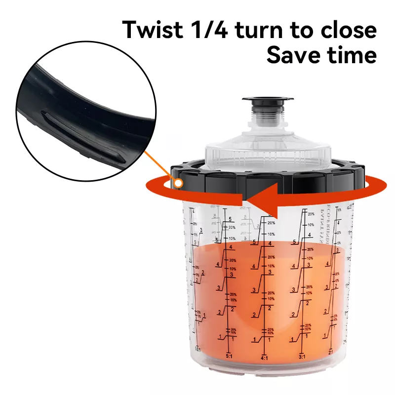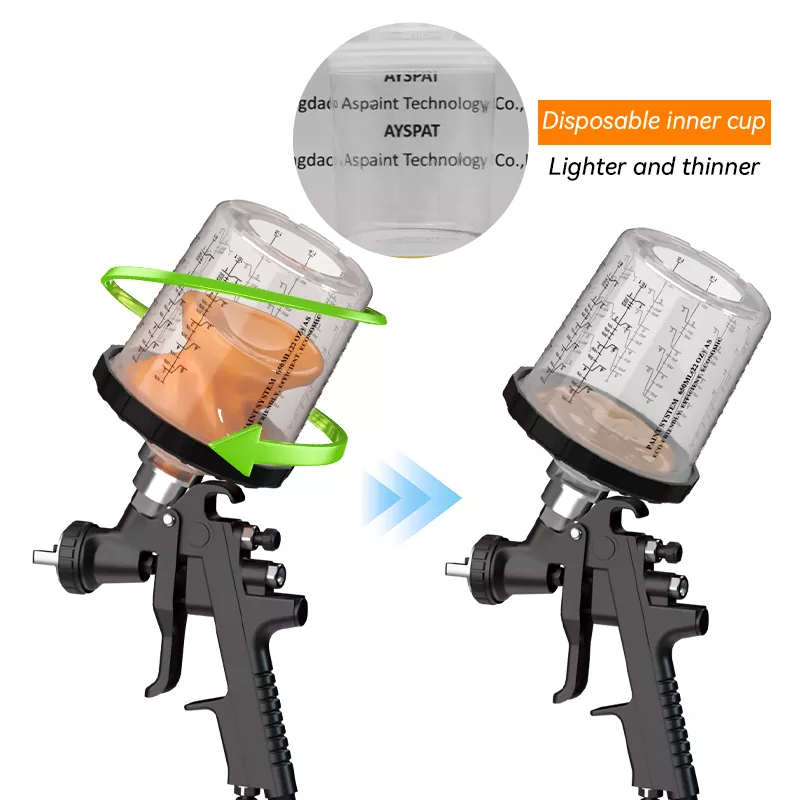 Система одноразовых стаканчиков для краски 2.0 представляет собой обновленную версию первого поколения.система одноразовых стаканчиков для краски.Инновационная конструкция ручки крышки чашки делает замену вкладыша более удобной, а также повышает прочность крышки, позволяя ей легко сгибаться в нескольких направлениях без поломки. Чашка распылителя AYS3.2 имеет запатентованную конструкцию насадки. Мы можем предложить профессиональную стратегию проектирования уникальных адаптеров для краскопультов различных марок.