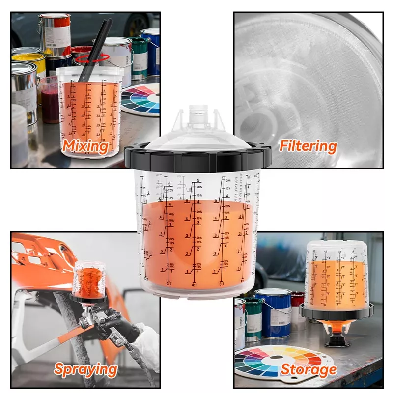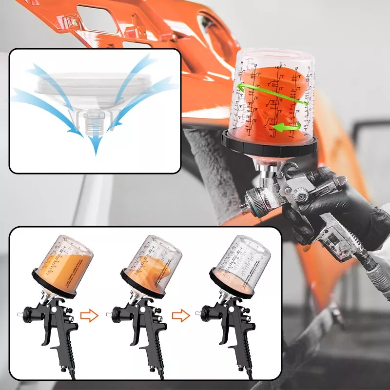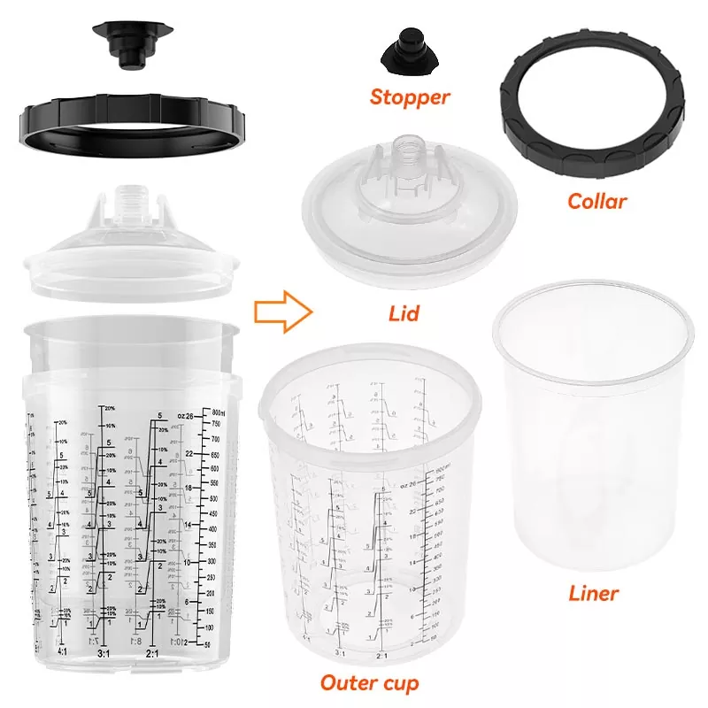 Система одноразовых стаканчиков для краски объемом 800 мл 1.0 позволяет легко и удобно смешивать и распылять краску, а также упрощает очистку и хранение краски. Больше не нужно перекладывать продукты в отдельные контейнеры — просто используйтеодноразовые внутренние стаканчикисмешивать, распылять и хранить краски разных цветов отдельно, исключая разбрызгивание краски. Одноразовый распылитель AYSPAT предназначен для частой смены цвета, что сокращает время очистки и расход растворителя.