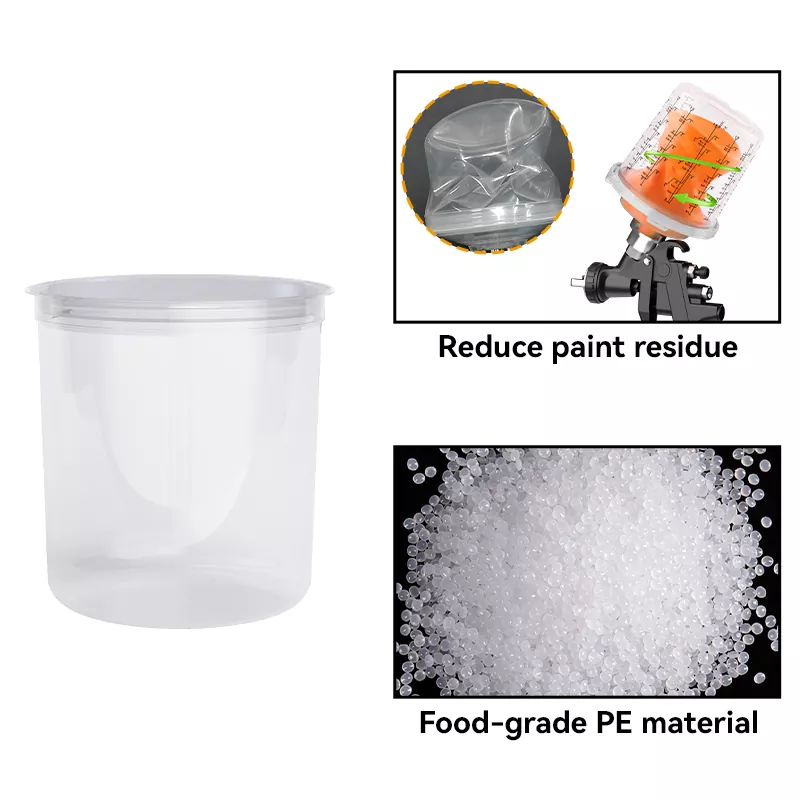 Одноразовая аэрозольная чашка 850 мл-это одноразовая система спреем-чашек, предназначенную для ремонта с 4 панелями, она подходит для участков, требующих 28,5 жидких унций (850 мл) или меньше материала, включая большие, прозрачные партии покрытия. Твердый чашка имеет интегрированную защелку для фиксирования, что устраняет необходимость в воле, что облегчает замену лайнера. Вырезанное окно позволяет художнику легко отслеживать уровни краски и снимать крышку более чисто и легко и легко при заполнении или тонировании. Как профессиональный производитель одноразовых аэрозольных оружейных чашек, мы предоставляем услуги OEM \ ODM для удовлетворения потребностей брендов настройки. Если вы хотите приобретать высококачественную одноразовую чашку спрей с низкими ценами, отправьте запрос.