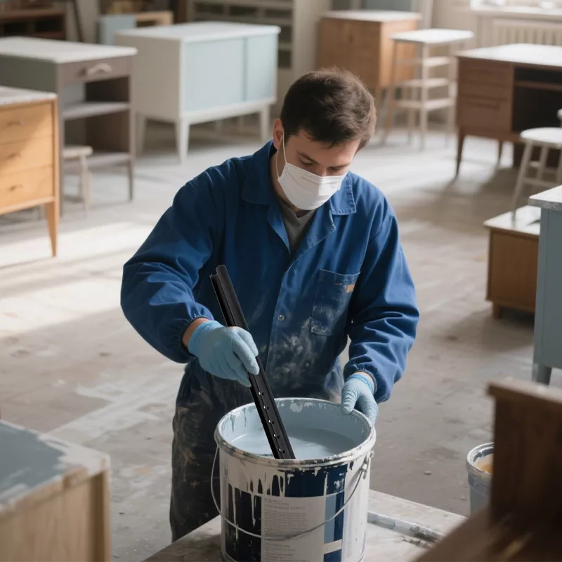 Используя палочку для смешивания краски, вы можете полностью смешать краску, чтобы внешний вид мебели становился более плавным и блестящим, что не только улучшает текстуру мебели, но и улучшает его общее качество и внешний вид.